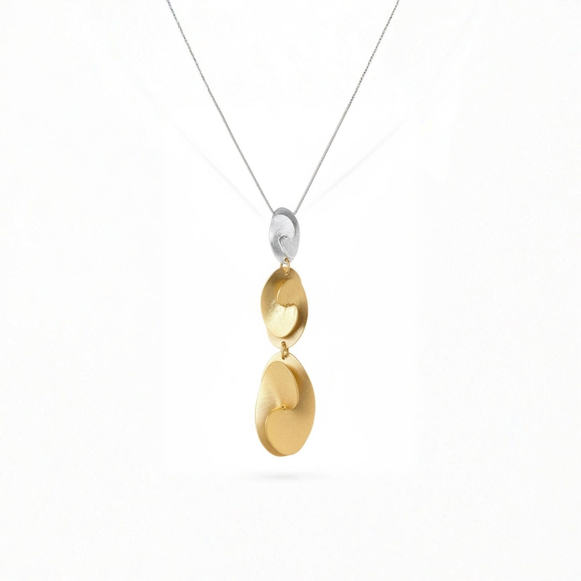 El Áurea Collar Maxi despliega la forma orgánica en toda su dimensión: una composición que fluye sobre el cuerpo con fuerza y ligereza.